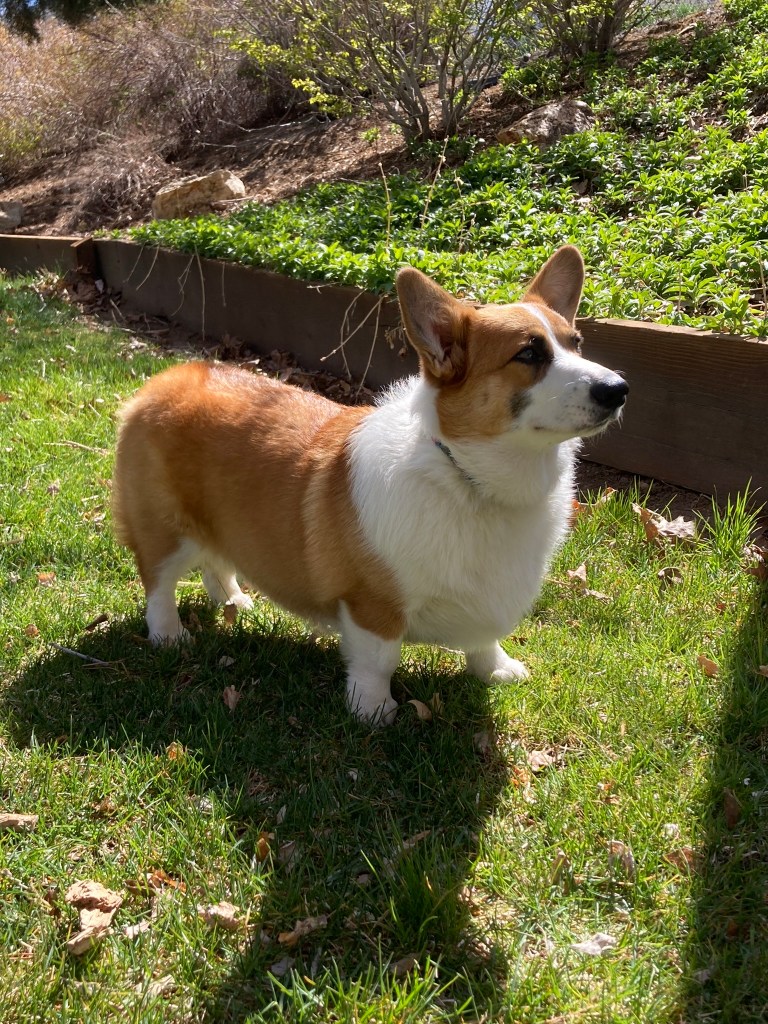 Our beautiful, sweet, red corgi. Her favorite things to do are: snuggling, eating, and chasing (the quad is her favorite). A true snuggle bug! She loves to sit at your feet and keep you company.
